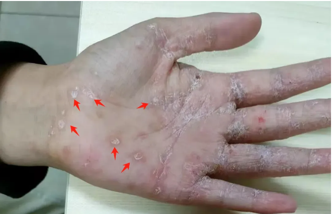 ✅ 提醒:长期未愈的手部湿疹,需与银屑病、真菌感染鉴别。